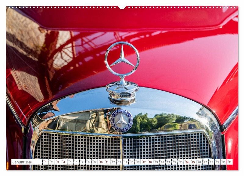 Januar: Klassisch schön, die Kühlerhaube des Mercedes Benz Adenauer.
