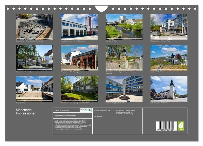 QUALITÄT - Hochwertiger Fotokalender mit 12 wunderschönen Motiven auf lichtbeständigem Bilderdruckpapier, robuste Spiralbindung mit Aufhängebügel.NACHHALTIG - deutliche Abfallreduzierung durch bedarfsgerechte Einzelstückfertigung, umweltfreundliches FSC-zertifiziertes Papier, Produktion in Deutschland, klimabewusste Logistik.PERFEKTES GESCHENK - Kalender für Freunde und Familie, für Kinder und Erwachsene, jung und alt, zu Weihnachten, Geburtstag oder zwischendurch.VIELFALT - Bildkalender in verschiedenen Formaten, z.B. DIN A5, DIN A4, DIN A3 sowie DIN A2. Ob Naturmotiv, Gemälde oder Fotos, ideal für ein persönliches Wohlfühlambiente.Wundervolle Bilder aus der schönen Stadt Meschede von Autor(in): Dirk Meutzner