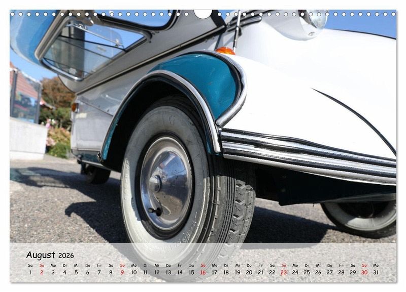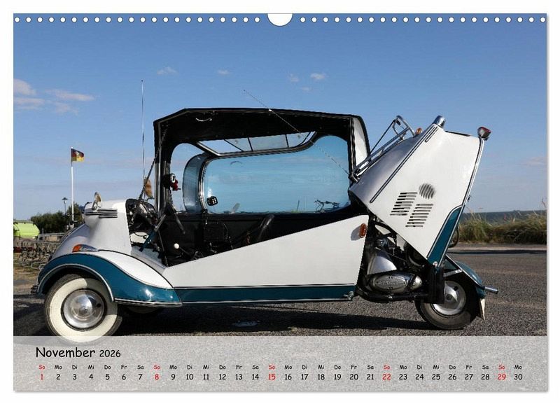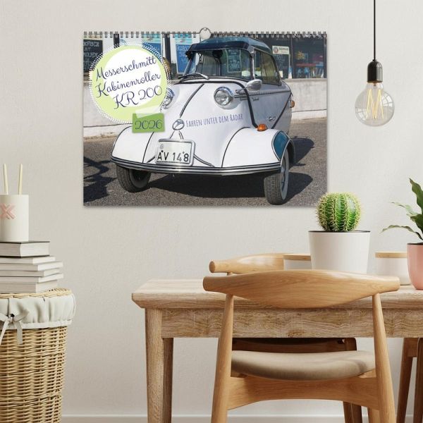 Die ersten Mobile nannten sich Fend Flitzer und wurden in Rosenheim hergestellt, bevor im Januar 1953 die Serienproduktion des KR 175 im Messerschmitt-Werk Regensburg begann. Der Kalender gibt ihnen schöne Detailaufnahmen des Messerschmitt Kabinenroller Model KR 200.
