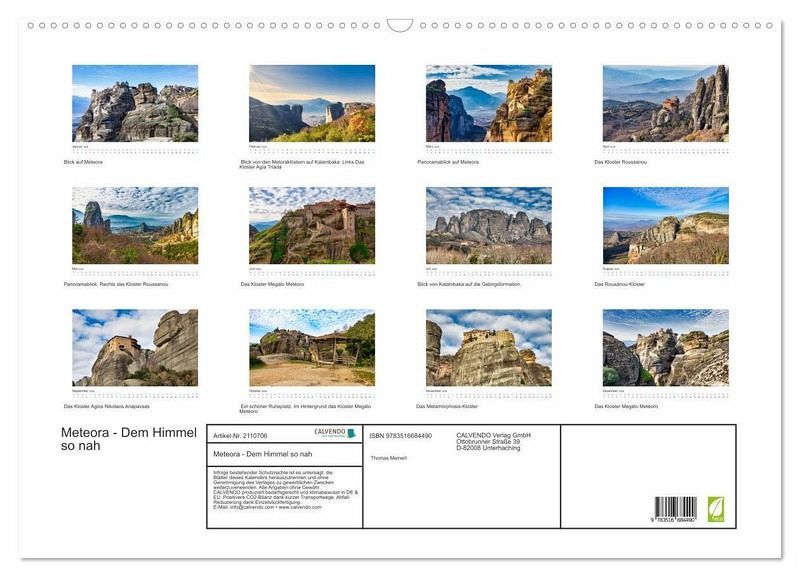 QUALITÄT - Hochwertiger Fotokalender mit 12 wunderschönen Motiven auf lichtbeständigem Bilderdruckpapier, robuste Spiralbindung mit Aufhängebügel.NACHHALTIG - deutliche Abfallreduzierung durch bedarfsgerechte Einzelstückfertigung, umweltfreundliches FSC-zertifiziertes Papier, Produktion in Deutschland, klimabewusste Logistik.PERFEKTES GESCHENK - Kalender für Freunde und Familie, für Kinder und Erwachsene, jung und alt, zu Weihnachten, Geburtstag oder zwischendurch.VIELFALT - Bildkalender in verschiedenen Formaten, z.B. DIN A5, DIN A4, DIN A3 sowie DIN A2. Ob Naturmotiv, Gemälde oder Fotos, ideal für ein persönliches Wohlfühlambiente.Die Meteora Klöster bei Kalambaka von Autor(in): Thomas Meinert