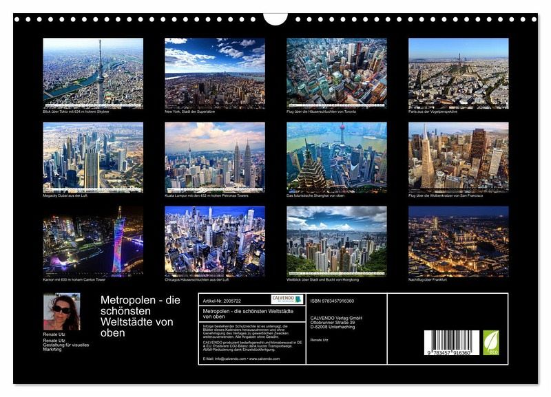 QUALITÄT - Hochwertiger Fotokalender mit 12 wunderschönen Motiven auf lichtbeständigem Bilderdruckpapier, robuste Spiralbindung mit Aufhängebügel.NACHHALTIG - deutliche Abfallreduzierung durch bedarfsgerechte Einzelstückfertigung, umweltfreundliches FSC-zertifiziertes Papier, Produktion in Deutschland, klimabewusste Logistik.PERFEKTES GESCHENK - Kalender für Freunde und Familie, für Kinder und Erwachsene, jung und alt, zu Weihnachten, Geburtstag oder zwischendurch.VIELFALT - Bildkalender in verschiedenen Formaten, z.B. DIN A5, DIN A4, DIN A3 sowie DIN A2. Ob Naturmotiv, Gemälde oder Fotos, ideal für ein persönliches Wohlfühlambiente.Atemberaubende Luftansichten aufregender Großstädte weltweit von Autor(in): Renate Bleicher
