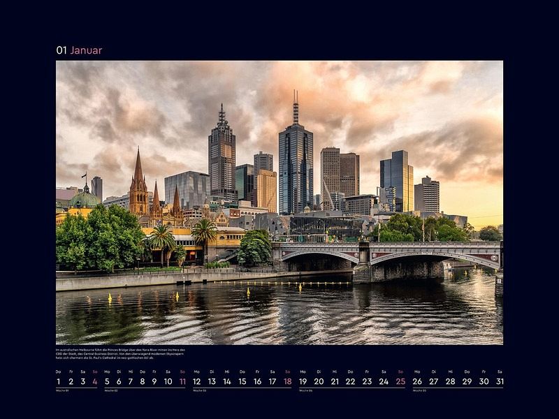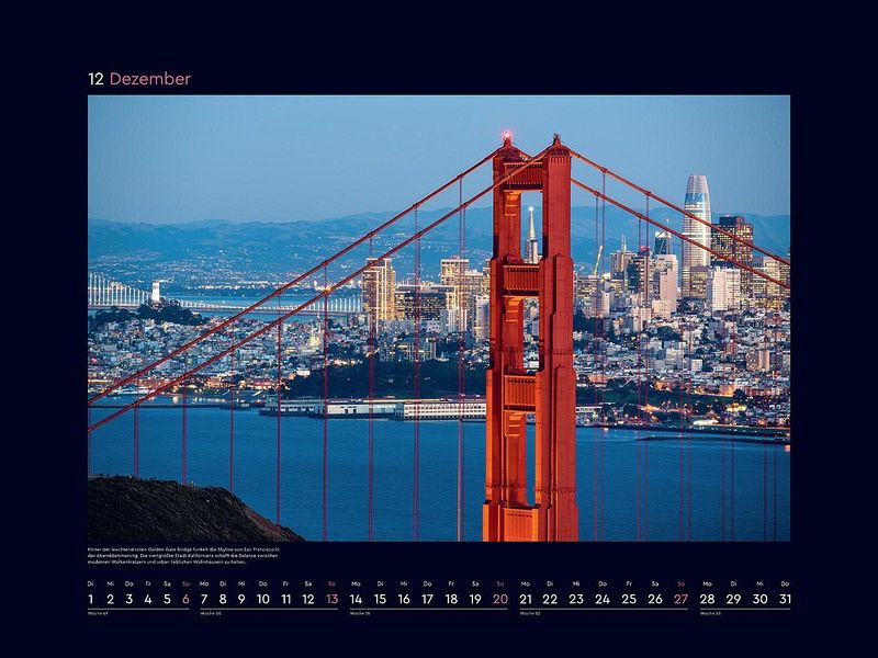 Monat für Monat wartet ein bildstarkes Highlight auf Entdeckung, und ein ansprechendes Kalendarium sorgt für optimalen Nutzen. Die mattschwarzen Rahmen bilden einen starken Kontrast zu den brillanten Fotografien.