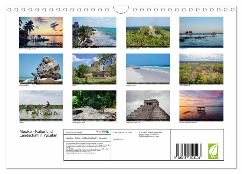Ein Kalender der die vielen wunderbaren Landschaften und spannenden Maya Stätten in Yucatan zeigt.
