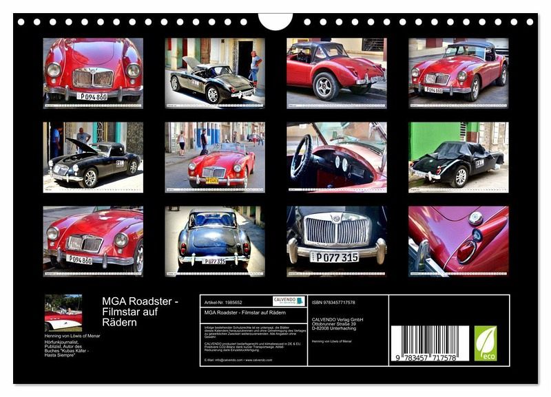 QUALITÄT - Hochwertiger Fotokalender mit 12 wunderschönen Motiven auf lichtbeständigem Bilderdruckpapier, robuste Spiralbindung mit Aufhängebügel.NACHHALTIG - deutliche Abfallreduzierung durch bedarfsgerechte Einzelstückfertigung, umweltfreundliches FSC-zertifiziertes Papier, Produktion in Deutschland, klimabewusste Logistik.PERFEKTES GESCHENK - Kalender für Freunde und Familie, für Kinder und Erwachsene, jung und alt, zu Weihnachten, Geburtstag oder zwischendurch.VIELFALT - Bildkalender in verschiedenen Formaten, z.B. DIN A5, DIN A4, DIN A3 sowie DIN A2. Ob Naturmotiv, Gemälde oder Fotos, ideal für ein persönliches Wohlfühlambiente.Der britische Sportwagen MGA Roadster in Havanna von Autor(in): Henning von Loewis of Menar
