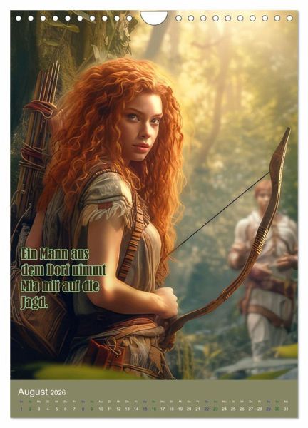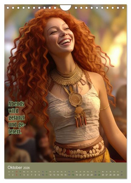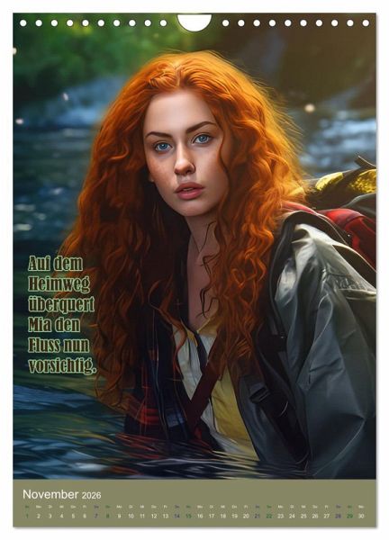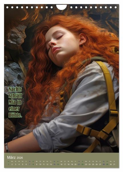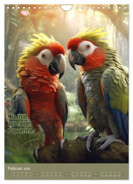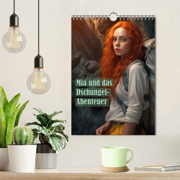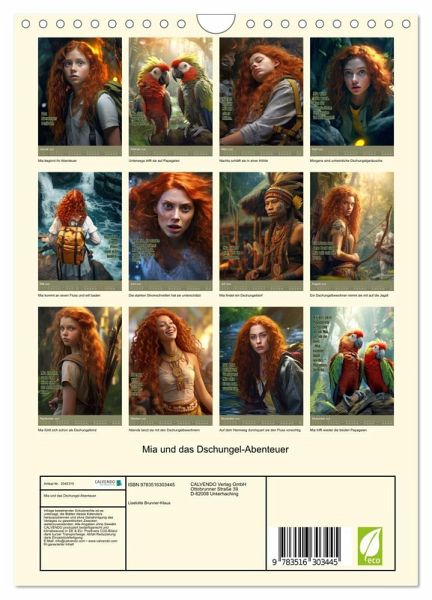 Willkommen zum Kalender Mia und das Dschungel- Abenteuer. Begleite Mia auf ihrer aufregenden Reise durch den Dschungel, wo sie auf exotische Papageien trifft und das Dschungeldorf findet. Erlebe, wie sie beinahe im Fluss ertrinkt und schließlich ein Fest mit den freundlichen Dschungelbewohnern feiert. Mia, mit ihrem roten welligen Haar und ihrer Entdeckerkleidung, wird dich auf eine unvergessliche Reise mitnehmen. Dieser Kalender ist perfekt für alle Abenteurer und Naturliebhaber, die den Dschungel hautnah erleben möchten. Ob für jung oder alt, die mit Hilfe der KI erstellten fantasievollen Bilder begeistern einfach. Bestelle jetzt deinen Kalender Mia und das Dschungel-Abenteuer und lass dich von Mias Geschichte inspirieren.