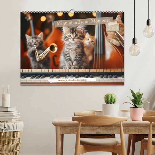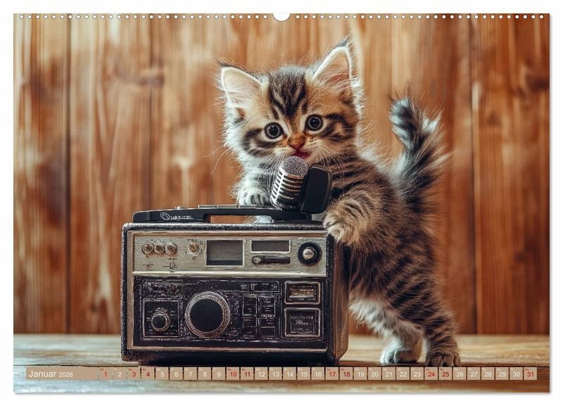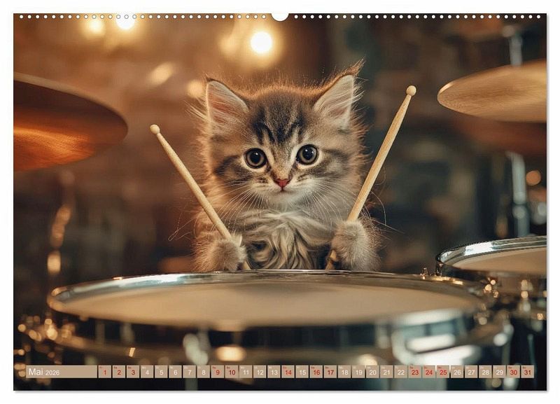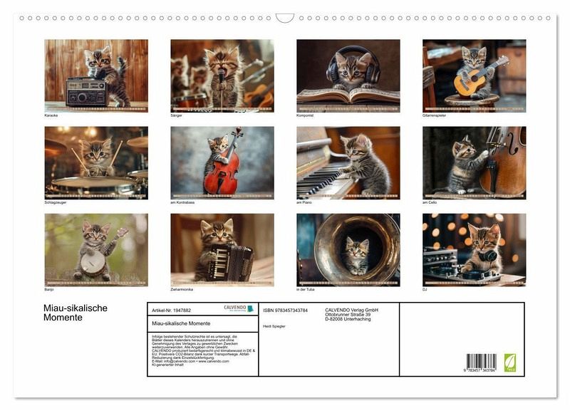 Erleben Sie zauberhafte "Miau-sikalische Momente" mit diesem einzigartigen Kalender, gefüllt mit kreativen KI-generierten Bildern! Tauchen Sie ein in die Welt der kleinen Katzenkinder, die auf ihre eigene, verspielte Weise die Bühne erobern. Ob am Klavier, mit der Gitarre oder Trommel - diese niedlichen Kätzchen zeigen Monat für Monat ihre musikalischen Talente und bringen mit ihren süßen Auftritten ein Lächeln in jeden Raum. Dank fortschrittlicher KI-Technologie sind die Bilder fantasievoll gestaltet und voller Detailreichtum, der Sie immer wieder überraschen wird. Perfekt für Katzenliebhaber und Musikfans gleichermaßen - holen Sie sich Ihre tägliche Dosis Samtpfoten und Musik und lassen Sie sich von diesen kleinen, virtuosen KI-Kätzchen verzaubern!