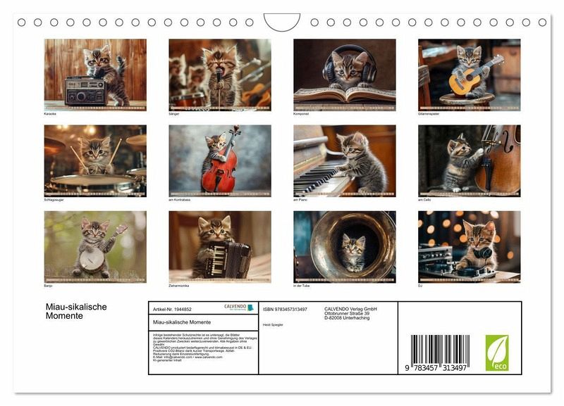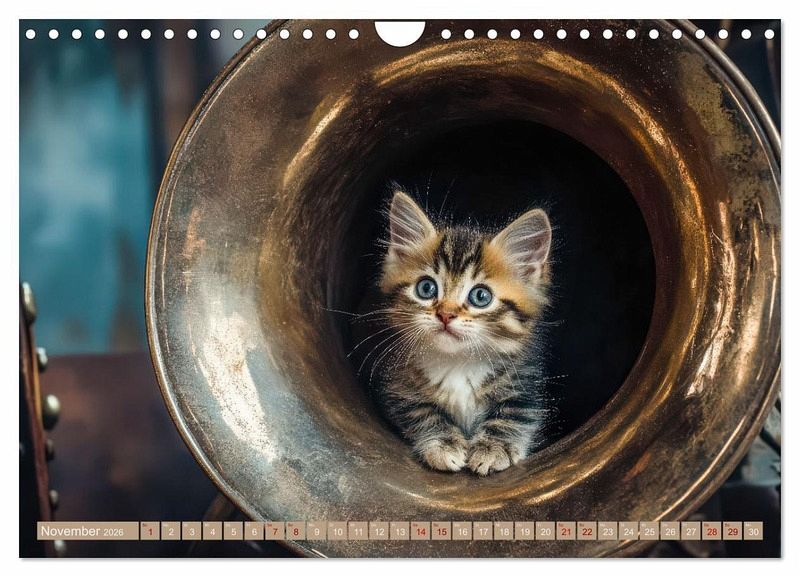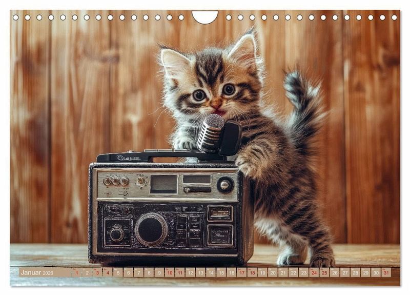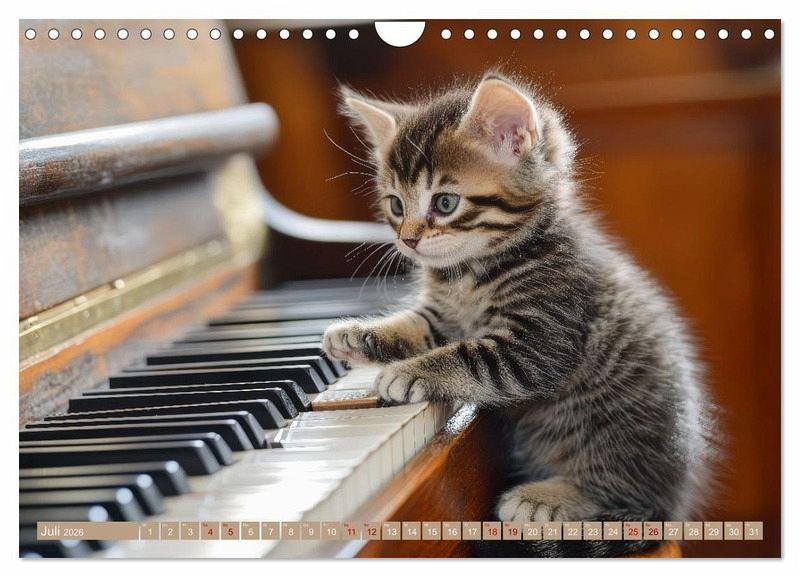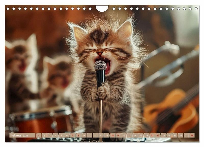 Erleben Sie zauberhafte "Miau-sikalische Momente" mit diesem einzigartigen Kalender, gefüllt mit kreativen KI-generierten Bildern! Tauchen Sie ein in die Welt der kleinen Katzenkinder, die auf ihre eigene, verspielte Weise die Bühne erobern. Ob am Klavier, mit der Gitarre oder Trommel - diese niedlichen Kätzchen zeigen Monat für Monat ihre musikalischen Talente und bringen mit ihren süßen Auftritten ein Lächeln in jeden Raum. Dank fortschrittlicher KI-Technologie sind die Bilder fantasievoll gestaltet und voller Detailreichtum, der Sie immer wieder überraschen wird. Perfekt für Katzenliebhaber und Musikfans gleichermaßen - holen Sie sich Ihre tägliche Dosis Samtpfoten und Musik und lassen Sie sich von diesen kleinen, virtuosen KI-Kätzchen verzaubern!