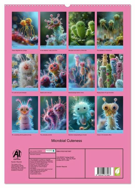 PREMIUM COLLECTION - Brilliant photo calendar with 12 beautiful motifs, high-gloss art print in museum quality.QUALITY - high-quality materials, sturdy back cover with 2 innovative insert pockets for optimum presentation on the wall.SUSTAINABLE - significant reduction in waste thanks to customised one-off production, environmentally friendly FSC-certified paper, production in Germany, climate-conscious logistics.PERFECT GIFT - calendars for friends and family, for children and adults, young and old, for Christmas, birthdays or in between.Discover tiny life - the curious everyday world of microbes von Autor(in): Kerstin Waurick