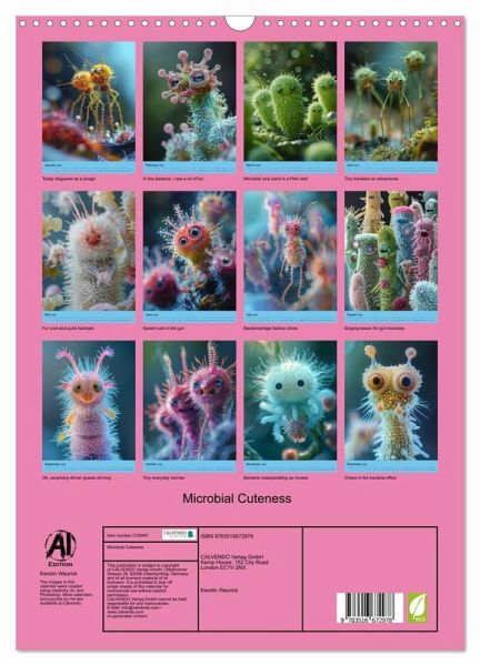 QUALITY - High-quality photo calendar with 12 beautiful images on light-resistant paper, robust spiral binding with hanger.SUSTAINABLE - Significant waste reduction due to print-on-demand production, environmentally friendly FSC-certified paper, produced in the UK, climate-conscious logistical processes.PERFECT GIFT - calendars for friends and family, for children, all ages and all occasions, from Christmas to birthdays and everything in between.LOTS OF CHOICE - Wall calendars in different sizes (DIN A4 and DIN A3), for any topic and personal taste, featuring photography, painting and illustrations.Discover tiny life - the curious everyday world of microbes, author: Kerstin Waurick