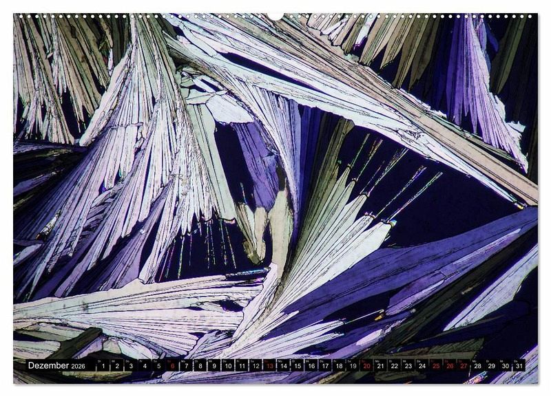 Tauchen Sie ein in die Welt des ganz Kleinen: das Universum der Mikrokristalle. Die Mikroskop-Aufnahmen stammen von Kristallisationen unterschiedlichster Stoffe. Es sind Kristalle von Alltäglichem wie Paracetamol oder von so etwas Exotischem wie Gibberellinsäure. Lassen Sie sich begeistern von der Ästhetik dieser winzigen Strukturen. Die längere Bildkante entspricht ca. 2 Millimetern in der Wirklichkeit. Die Redaktion hat diesen Kalender für die CALVENDO Gold-Edition ausgewählt