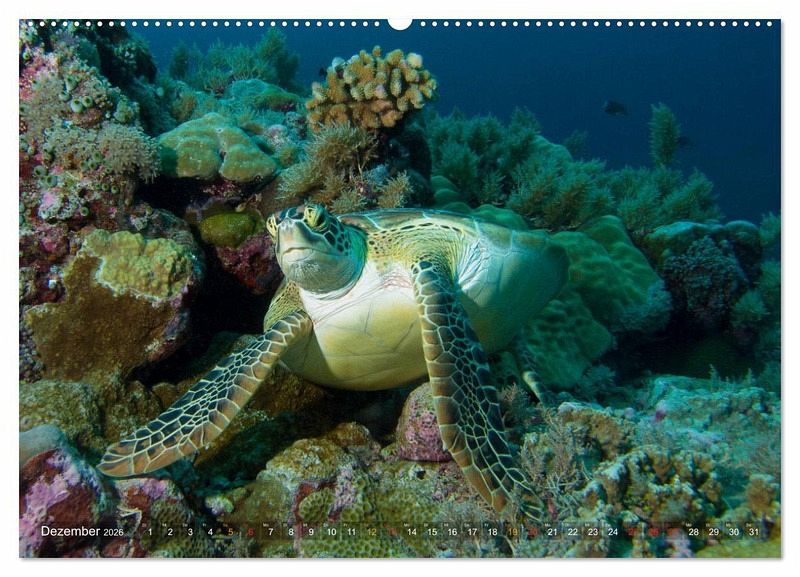 Dezember: Meeresschildkröte - Chelonia mydas Palau - Mikronesien