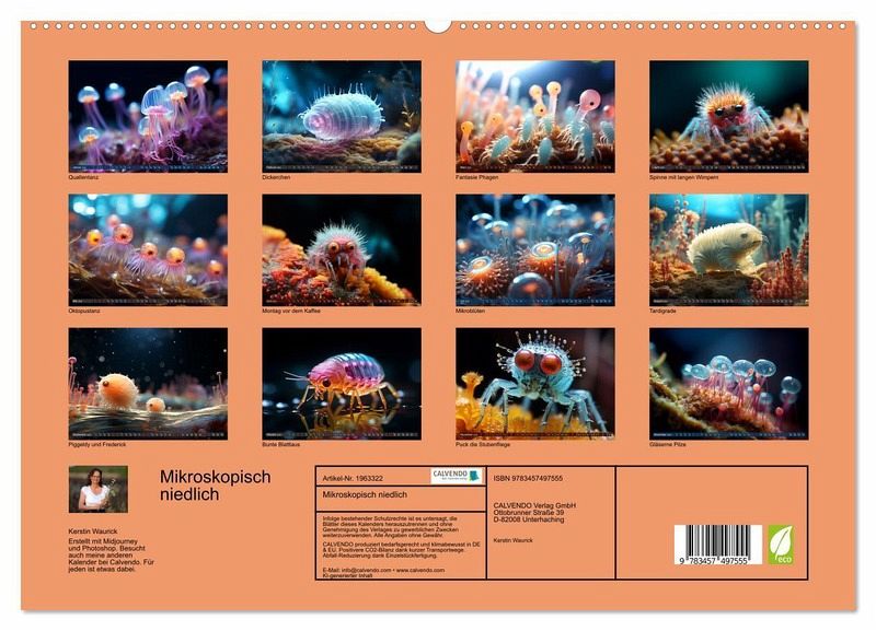 PREMIUM-LINIE - Brillanter Fotokalender mit 12 wunderschönen Motiven, Kunstdruck in Hochglanz in Museumsqualität.QUALITÄT - edle Materialien, stabile Rückwand mit 2 innovativen Einstecktaschen für eine optimale Präsentation an der Wand.NACHHALTIG - deutliche Abfallreduzierung durch bedarfsgerechte Einzelstückfertigung, umweltfreundliches FSC-zertifiziertes Papier, Produktion in Deutschland, klimabewusste Logistik.PERFEKTES GESCHENK - Kalender für Freunde und Familie, für Kinder und Erwachsene, jung und alt, zu Weihnachten, Geburtstag oder zwischendurch.Mikrokosmos der Niedlichkeit - Ein Jahr mit Drolligen Mikroorganismen von Autor(in): Kerstin Waurick