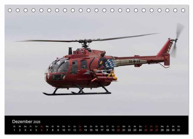 In diesem Kalender finden Sie jeden Monat ein neues spannendes Motiv von Militärhubschraubern welche für die verschiedensten Aufgabengebiete ausgerüstet sind, z.B. U-Bootjagd, SAR (Personenrettung), Aufklärungsflüge und Panzerbekämpfung, Material- und Truppentransport.