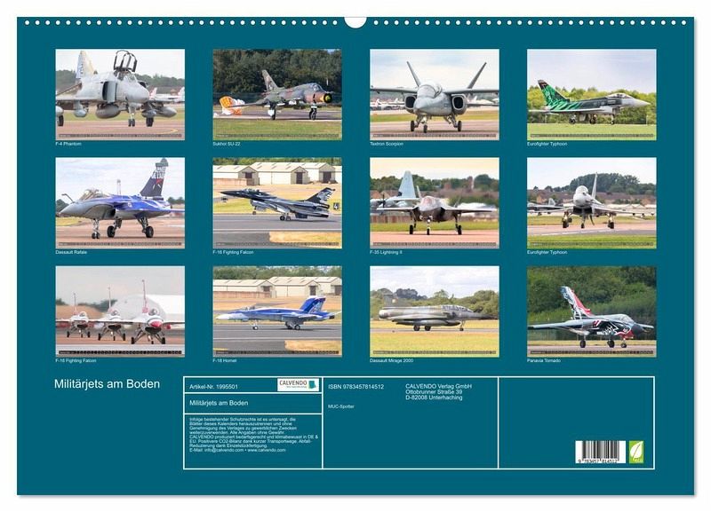 Wer die Geschwindigkeit und Kraft eines Kampfjets erleben möchte, ist bei diesem Kalender genau richtig. 13 beeindruckende Motive, die einen Monat für Monat aufs neue erfreuen. Ein "MUSS" für jeden Flugzeugfan.