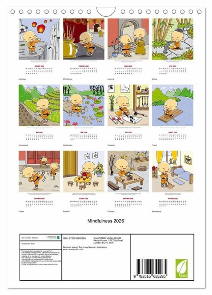 Those who live mindfully gain more from life. This is the motto of the Mindfulness Calendar 2026, designed by bestselling author Bernhard Moestl - Shaolin - and multiple award-winning illustrator Irene Nemeth. Every month the cuddly Shaolin monk Tien Tan helps you with a new task to focus on the essential things in life and to live more consciously and intensively.