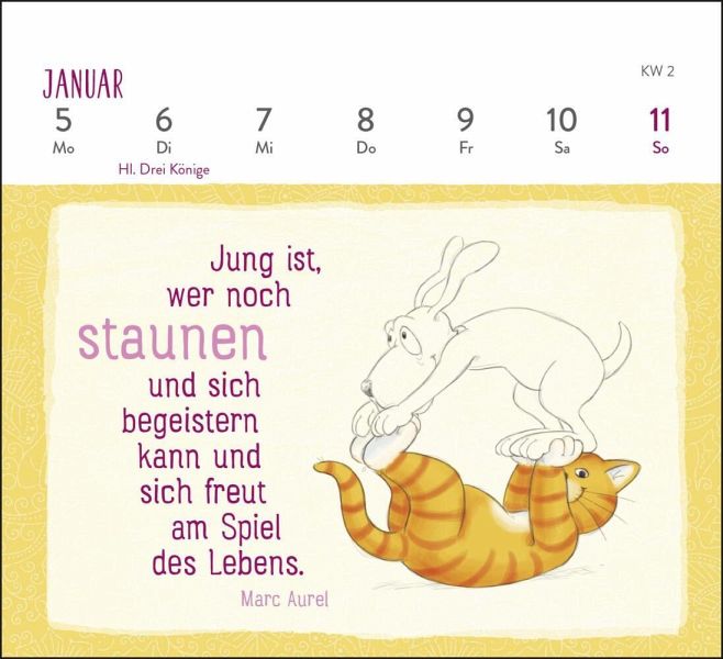 Tischkalender (Maße: 13,5 x 14,0 cm) als fröhlicher Anti-Stress-Begleiter für das Jahr 2026