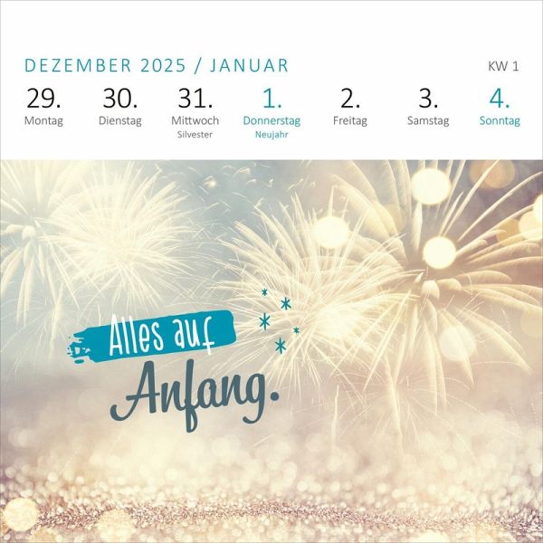 Positiver Start ins Jahr 2026: Platzsparender Tischkalender mit 53 modern gestalteten Seiten (11,5 x 12,5 cm)Alles auf einen Blick: Wochenkalendarium mit Informationen zu Feiertagen und besonderen GedenktagenHochwertige Qualität: Papier aus nachhaltigen und kontrollierten Quellen, mit praktischer Spirale für müheloses UmblätternTolles Geschenk für einen aktiven Ruhestand: Eine großartige Aufmerksamkeit für Mama, Papa, Oma, Schwiegereltern und alle, die das Leben in vollen Zügen genießen möchten