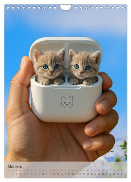 Zwei Kätzchen im Kopfhörer-Case, ein Känguru in der Teetasse, ein Elefant auf der Hand - hier stimmt der Maßstab ganz offensichtlich nicht. Und genau das macht den Reiz aus. Zwölf detailreiche Motive zeigen Tiere in alltäglichen Szenen, die plötzlich zur Miniaturwelt werden: mal witzig, mal poetisch, immer überraschend. Eine Einladung zum Staunen über das Absurde im Vertrauten - für alle, die Tiere lieben und gern zweimal hinschauen. Der Kalender ist mit Untertützung von KI entstanden.