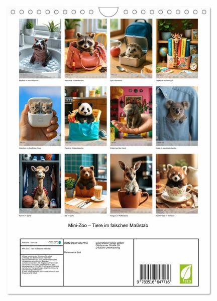 QUALITÄT - Hochwertiger Fotokalender mit 12 wunderschönen Motiven auf lichtbeständigem Bilderdruckpapier, robuste Spiralbindung mit Aufhängebügel.NACHHALTIG - deutliche Abfallreduzierung durch bedarfsgerechte Einzelstückfertigung, umweltfreundliches FSC-zertifiziertes Papier, Produktion in Deutschland, klimabewusste Logistik.PERFEKTES GESCHENK - Kalender für Freunde und Familie, für Kinder und Erwachsene, jung und alt, zu Weihnachten, Geburtstag oder zwischendurch.VIELFALT - Bildkalender in verschiedenen Formaten, z.B. DIN A5, DIN A4, DIN A3 sowie DIN A2. Ob Naturmotiv, Gemälde oder Fotos, ideal für ein persönliches Wohlfühlambiente.Zwölf verblüffende Tiermotive, die mit Maßstab und Wirklichkeit spielen. von Autor(in): Renaissance Soul