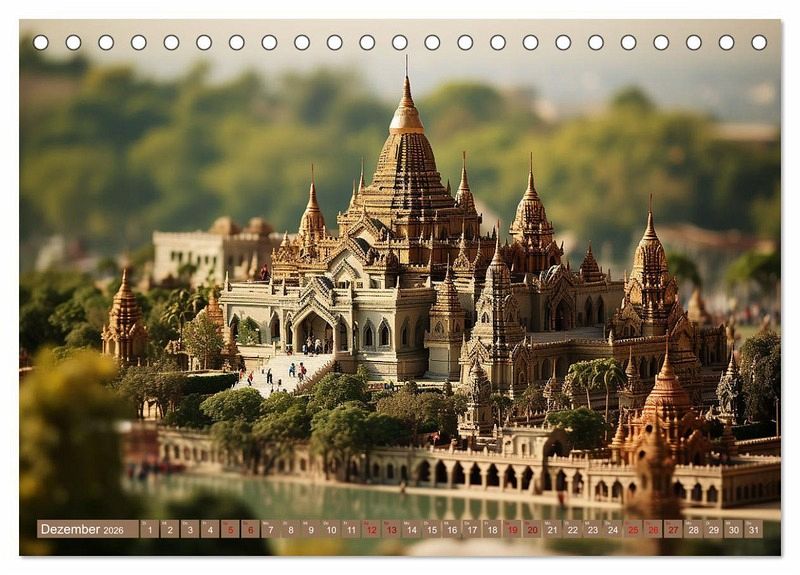 Sehenswürdigkeiten, die jeder schon mal gesehen hat. Entweder persönlich oder in Prospekten. Oder doch nicht? Diese hier sind von einer KI interpretiert, die es mit Details nicht so genau nimmt. Interessant ist aber, dass man das Bauwerk dennoch erkennen kann. So entstand ein Kalender, der ein Ratespiel ergibt. Woran genau erkennt man das Bauwerk? Was ist anders? Was ist genau so? Kann jemand, der es in Natura gesehen hat, sich erinnern was stimmt und was nicht? Warum nicht mal ein etwas anderer Kalender mit Sehenswürdigkeiten? Noch dazu in Miniatur, wie in einem Themenpark. Schönes Erinnern und nachdenken wünsche ich.