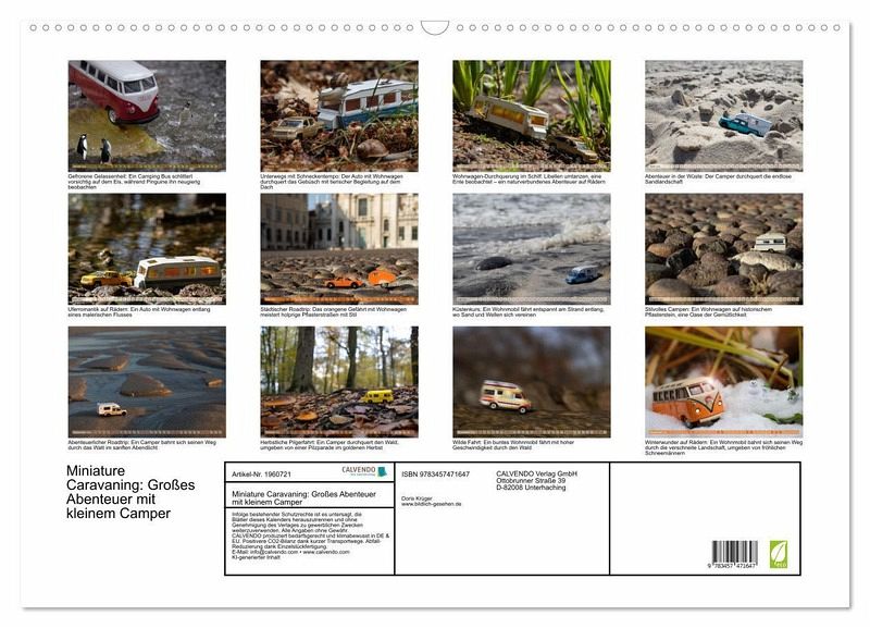Entdecke die faszinierende Welt der Miniaturabenteuer mit unserem exklusiven Kalender. Tauche ein in eine beeindruckende Sammlung von Spielzeug-Campern, liebevoll mit traditioneller Fotografie in Szene gesetzt. Dank innovativer KI-Anreicherung erwachen die Fahrzeuge in ihrer Umgebung zu Leben und nehmen dich mit auf fantastische Reisen durch unterschiedliche Landschaften.