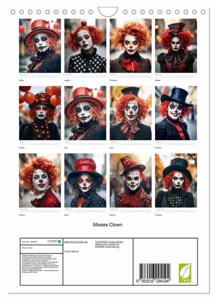QUALITÄT - Hochwertiger Fotokalender mit 12 wunderschönen Motiven auf lichtbeständigem Bilderdruckpapier, robuste Spiralbindung mit Aufhängebügel.NACHHALTIG - deutliche Abfallreduzierung durch bedarfsgerechte Einzelstückfertigung, umweltfreundliches FSC-zertifiziertes Papier, Produktion in Deutschland, klimabewusste Logistik.PERFEKTES GESCHENK - Kalender für Freunde und Familie, für Kinder und Erwachsene, jung und alt, zu Weihnachten, Geburtstag oder zwischendurch.VIELFALT - Bildkalender in verschiedenen Formaten, z.B. DIN A5, DIN A4, DIN A3 sowie DIN A2. Ob Naturmotiv, Gemälde oder Fotos, ideal für ein persönliches Wohlfühlambiente.Misses Clown zeigt die Frauen der Clowns im ungewöhnlichen Stil von Autor(in): Thomas Meinert