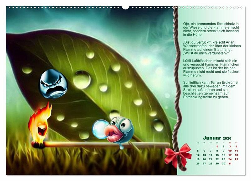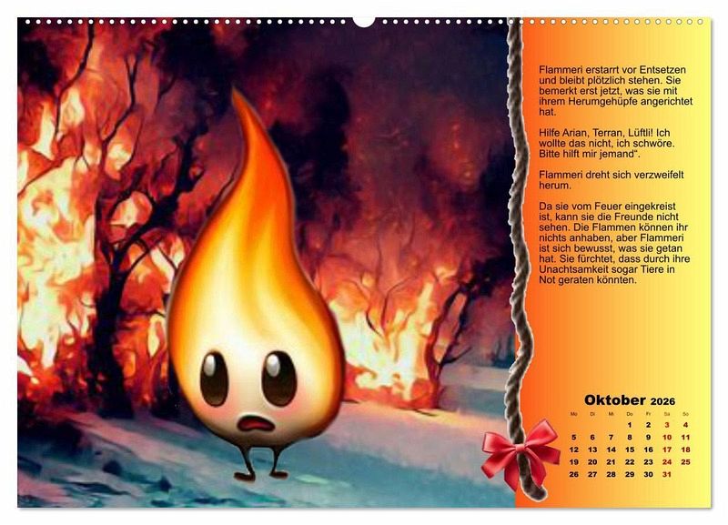 Die vier kleinen Elemente erleben das ganze Jahr eine aufregende Zeit miteinander, Jede Seite enthält eine kurze Erzählung über die Bilder, die durch KI erstellt wurden.