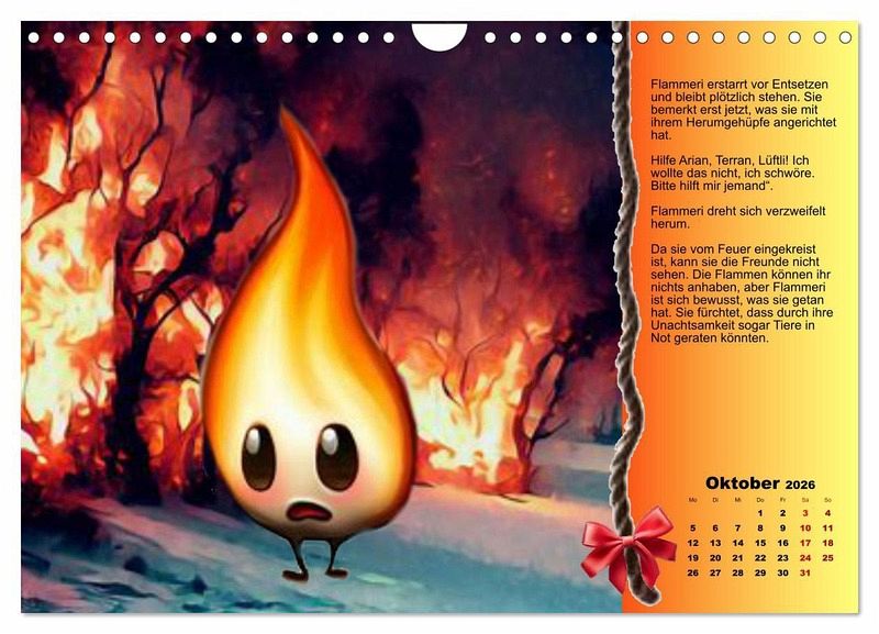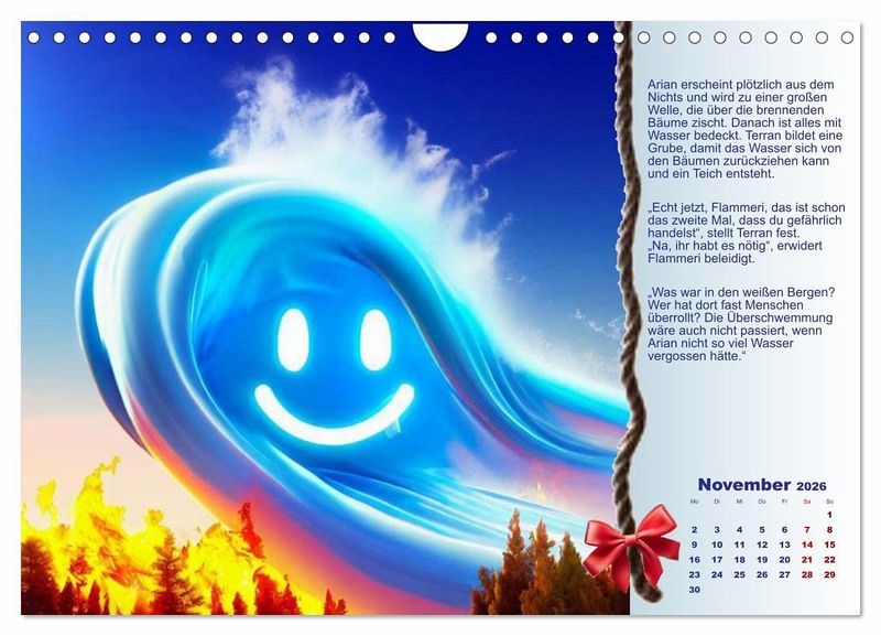 Die vier kleinen Elemente erleben das ganze Jahr eine aufregende Zeit miteinander, Jede Seite enthält eine kurze Erzählung über die Bilder, die durch KI erstellt wurden.