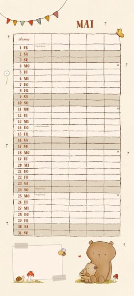 Am liebsten verbringt Mister O'Lui seine Zeit mit dem Streifenschwein Rupert und seinen anderen Freunden - da kann man schon mal den Überblick über die vielen Verabredungen verlieren. Dank dieses zauberhaften Familienplaners ist die Alltags-Organisation leichter und übersichtlicher denn je. Ob Playdates, Geburtstage, anstehende Arzttermine oder Mamas Mädelsabend - kein Termin wird mehr vergessen. Die warmherzigen Illustrationen versüßen der ganzen Familie jeden Monat!Rundum organisiert: In fünf Spalten gibt es genug Platz für alle Pläne und Termine auf einen BlickInklusive Schulferien-Übersicht, Stundenplänen und 3-Monats-Vorschau bis März 2027