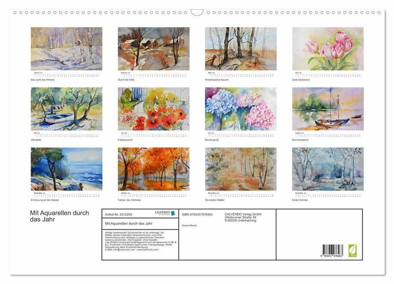 QUALITÄT - Hochwertiger Fotokalender mit 12 wunderschönen Motiven auf lichtbeständigem Bilderdruckpapier, robuste Spiralbindung mit Aufhängebügel.NACHHALTIG - deutliche Abfallreduzierung durch bedarfsgerechte Einzelstückfertigung, umweltfreundliches FSC-zertifiziertes Papier, Produktion in Deutschland, klimabewusste Logistik.PERFEKTES GESCHENK - Kalender für Freunde und Familie, für Kinder und Erwachsene, jung und alt, zu Weihnachten, Geburtstag oder zwischendurch.VIELFALT - Bildkalender in verschiedenen Formaten, z.B. DIN A5, DIN A4, DIN A3 sowie DIN A2. Ob Naturmotiv, Gemälde oder Fotos, ideal für ein persönliches Wohlfühlambiente.Landschaften und Blumen in Aquarell von Autor(in): Sylwia Mesch