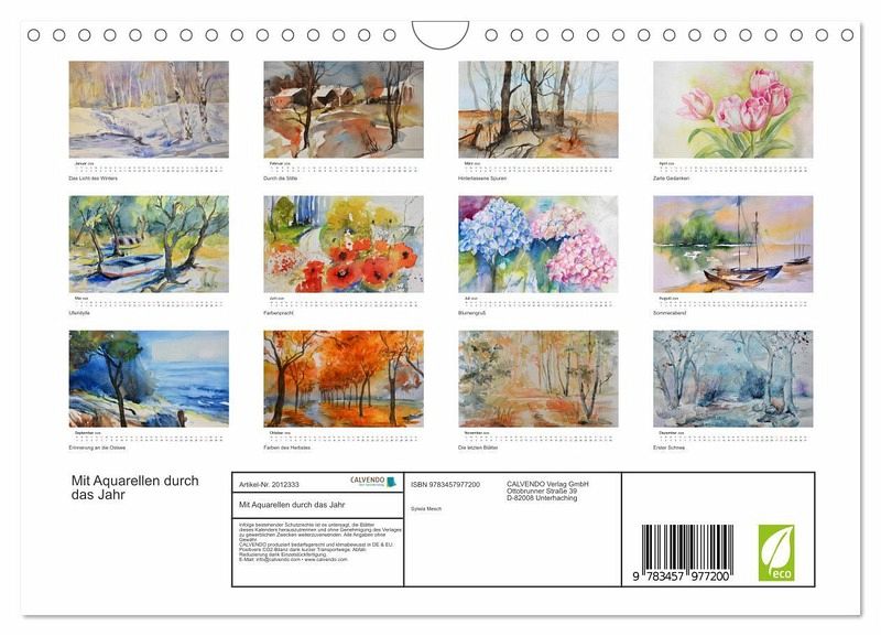 QUALITÄT - Hochwertiger Fotokalender mit 12 wunderschönen Motiven auf lichtbeständigem Bilderdruckpapier, robuste Spiralbindung mit Aufhängebügel.NACHHALTIG - deutliche Abfallreduzierung durch bedarfsgerechte Einzelstückfertigung, umweltfreundliches FSC-zertifiziertes Papier, Produktion in Deutschland, klimabewusste Logistik.PERFEKTES GESCHENK - Kalender für Freunde und Familie, für Kinder und Erwachsene, jung und alt, zu Weihnachten, Geburtstag oder zwischendurch.VIELFALT - Bildkalender in verschiedenen Formaten, z.B. DIN A5, DIN A4, DIN A3 sowie DIN A2. Ob Naturmotiv, Gemälde oder Fotos, ideal für ein persönliches Wohlfühlambiente.Landschaften und Blumen in Aquarell von Autor(in): Sylwia Mesch