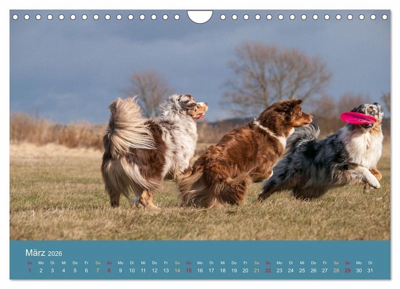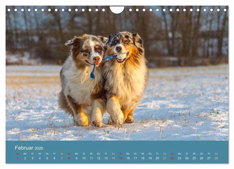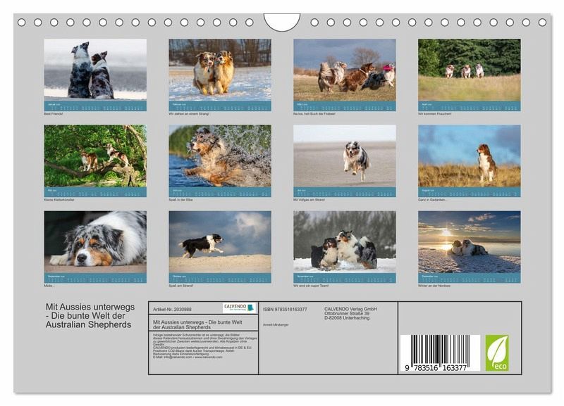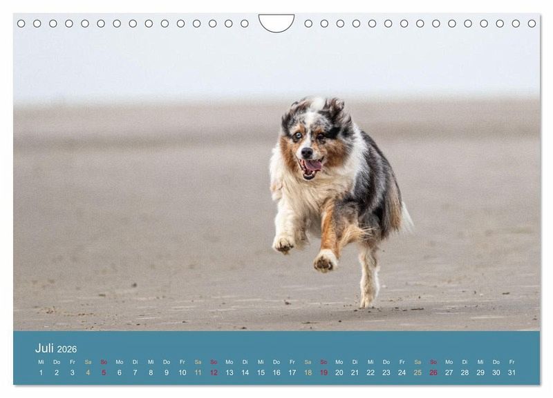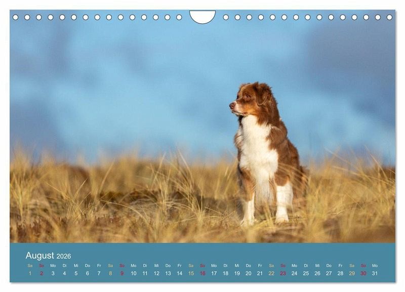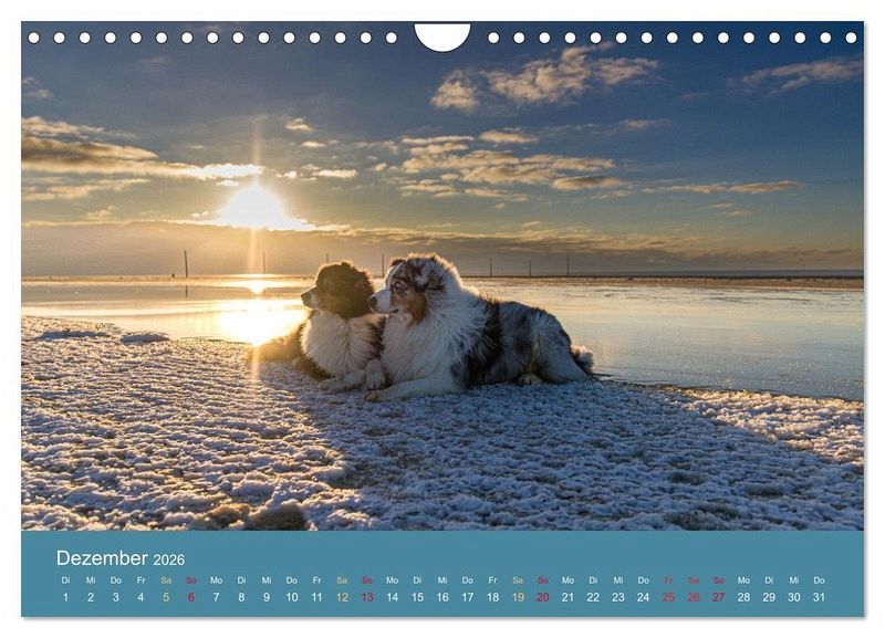 Entdecke die Bunte Welt der Australian Shepherds - Tauche ein in die faszinierende Vielfalt dieser außergewöhnlichen Hunderasse! Unser Kalender bringt Dir Monat für Monat eindrucksvolle Bilder und charmante Momente dieser intelligenten, lebhaften und treuen Vierbeiner. Jeder Monat zeigt die einzigartigen Facetten des Australian Shepherds - von tobenden Hunden am Strand, über Spaß im Wasser bis hin zu verträumten Momenten im Sonnenuntergang.