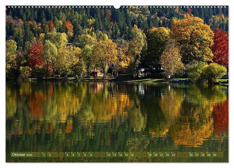 Oktober: Herbstbäume spiegeln sich im Schliersee