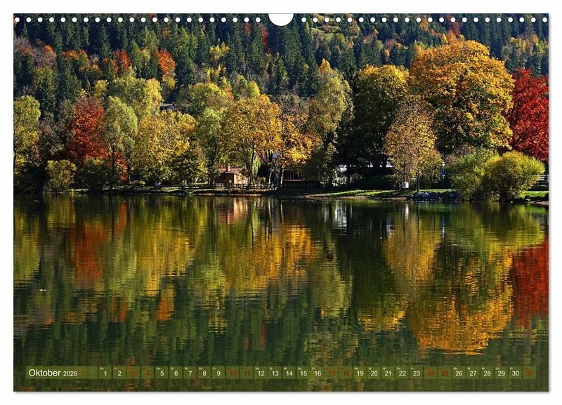 Oktober: Herbstbäume spiegeln sich im Schliersee