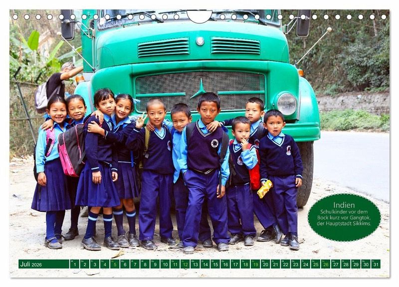 Juli: Indien - Schulkinder vor dem Bock kurz vor Gangtok, der Hauptstadt Sikkims.
