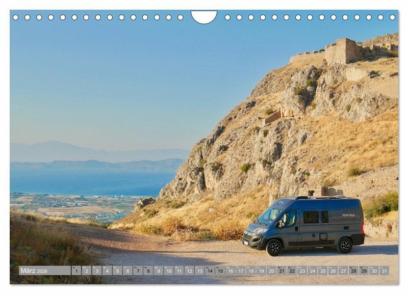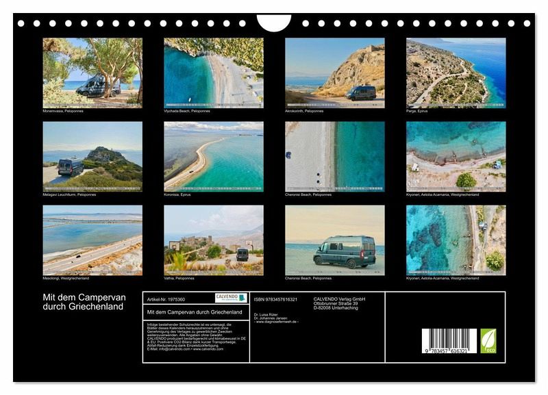Eine Tour mit dem Campervan durch Griechenland lässt keine Wünsche offen! Dieser Kalender begleitet Sie einmal durch das "Land der Götter". Wir nehmen Sie mit auf traumhafte Küstenstraßen, zu Stellplätzen an paradiesischen Buchten und bis zur südlichsten Geisterstadt des Festlandes. Die hochwertigen Fotografien werden Sie jeden Monat erneut begeistern.