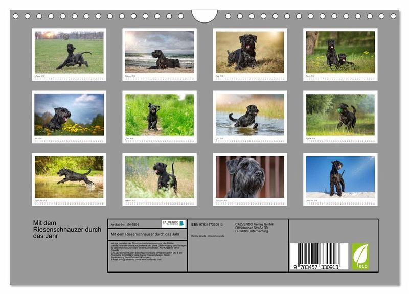 Riesenschnauzer sind charakterstarke Hunde mit rauher Schale und weichem Kern. Sie sind alles in einem... treue Beschützer, fröhliche Dickköpfe, die eine konsequente Erziehung benötigen und wären trotz ihrer Größe manchmal auch gern Schoßhunde. Wer einmal einen Schnauzer sein Eigen nennen durfte, wird wissen, dass diese Rasse süchtig macht. Der Kalender ist eine Liebeserklärung an diese wundervolle Rasse. Eine Empfehlung für jeden Hundeliebhaber.