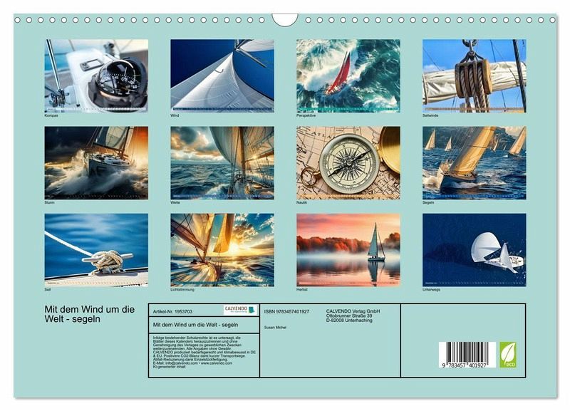 Bereiten Sie sich darauf vor, das Jahr mit einer unvergesslichen Reise zu beginnen! Tauche ein in ein Abenteuer, das deine Seele beflügelt: Mit dem Wind um die Welt segeln! Begib dich auf eine unvergessliche Reise über die sieben Meere, während du die Freiheit des Ozeans spürst und die Schönheit der Welt entdeckst. Dieser Kalender wurde teils mit Unterstützung der KI erstellt.