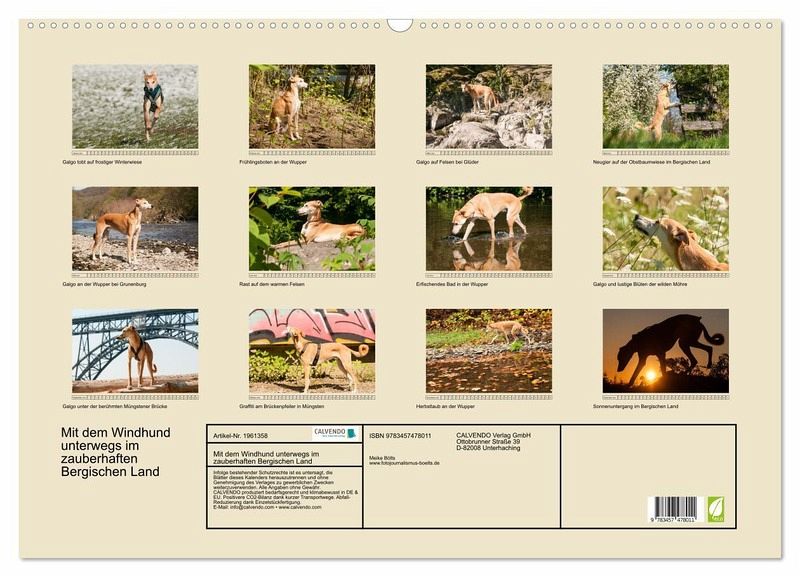 Ein wunderschöner Galgo Espagnol trifft auf die atemberaubend schöne Natur des Bergischen Land. Geboren in Portugal, fühlt sich dieser elegante Windhund auch in Deutschland wohl. Er posiert unter der weltbekannten Müngstener Brücke, zwischen traumhaften Blüten, badet in der märchenhaften Wupper oder träumt im Sonnenuntergang. Ein Muss für jeden Hunde- und Naturfreund.