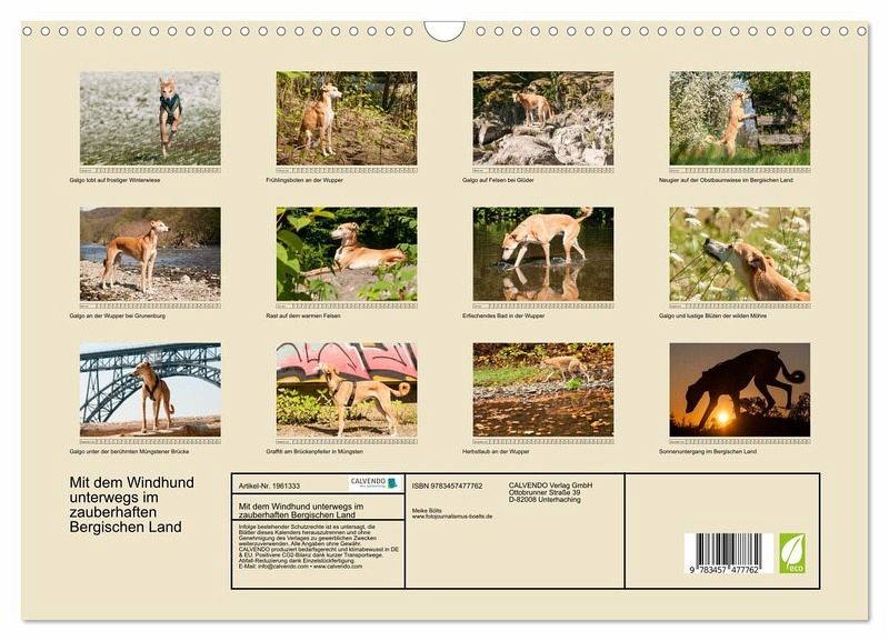 Ein wunderschöner Galgo Espagnol trifft auf die atemberaubend schöne Natur des Bergischen Land. Geboren in Portugal, fühlt sich dieser elegante Windhund auch in Deutschland wohl. Er posiert unter der weltbekannten Müngstener Brücke, zwischen traumhaften Blüten, badet in der märchenhaften Wupper oder träumt im Sonnenuntergang. Ein Muss für jeden Hunde- und Naturfreund.