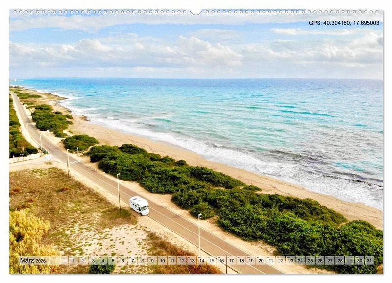 Eine Tour mit dem Wohnmobil durch Italien lässt keine Wünsche offen! Dieser Kalender zeigt Ihnen die schönsten Plätze für Camper mit traumhaftem Blick auf das glasklare Meer Apuliens, die geschwungenen Hügel der Toskana oder die beeindruckenden Berge Umbriens. Die hochwertigen Fotografien werden Sie jeden Monat erneut begeistern.
