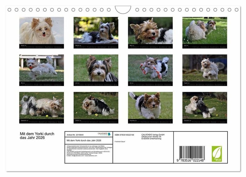 QUALITÄT - Hochwertiger Fotokalender mit 12 wunderschönen Motiven auf lichtbeständigem Bilderdruckpapier, robuste Spiralbindung mit Aufhängebügel.NACHHALTIG - deutlicheAbfallreduzierung durch bedarfsgerechte Einzelstückfertigung, umweltfreundliches FSC-zertifiziertes Papier, Produktion in Deutschland, klimabewusste Logistik.PERFEKTES GESCHENK - Kalender für Freunde und Familie, für Kinder und Erwachsene, jung und alt, zu Weihnachten, Geburtstag oder zwischendurch.VIELFALT - Bildkalender in verschiedenen Formaten, z.B. DIN A5, DIN A4, DIN A3 sowie DIN A2. Ob Naturmotiv, Gemälde oder Fotos, ideal für ein persönliches Wohlfühlambiente.Golddust und Biewer Yorkshire Terrier von Autor(in): Friedhelm Bauer