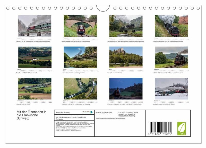 QUALITÄT - Hochwertiger Fotokalender mit 12 wunderschönen Motiven auf lichtbeständigem Bilderdruckpapier, robuste Spiralbindung mit Aufhängebügel.NACHHALTIG - deutliche Abfallreduzierung durch bedarfsgerechte Einzelstückfertigung, umweltfreundliches FSC-zertifiziertes Papier, Produktion in Deutschland, klimabewusste Logistik.PERFEKTES GESCHENK - Kalender für Freunde und Familie, für Kinder und Erwachsene, jung und alt, zu Weihnachten, Geburtstag oder zwischendurch.VIELFALT - Bildkalender in verschiedenen Formaten, z.B. DIN A5, DIN A4, DIN A3 sowie DIN A2. Ob Naturmotiv, Gemälde oder Fotos, ideal für ein persönliches Wohlfühlambiente.Mit der Museumseisenbahn durch das Wiesental in der Fränkischen Schweiz von Autor(in): reinhold möller