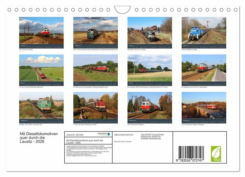 QUALITÄT - Hochwertiger Fotokalender mit 12 wunderschönen Motiven auf lichtbeständigem Bilderdruckpapier, robuste Spiralbindung mit Aufhängebügel.NACHHALTIG - deutliche Abfallreduzierung durch bedarfsgerechte Einzelstückfertigung, umweltfreundliches FSC-zertifiziertes Papier, Produktion in Deutschland, klimabewusste Logistik.PERFEKTES GESCHENK - Kalender für Freunde und Familie, für Kinder und Erwachsene, jung und alt, zu Weihnachten, Geburtstag oder zwischendurch.VIELFALT - Bildkalender in verschiedenen Formaten, z.B. DIN A5, DIN A4, DIN A3 sowie DIN A2. Ob Naturmotiv, Gemälde oder Fotos, ideal für ein persönliches Wohlfühlambiente.Der Kalender für Bahnliebhaber von Autor(in): Stefan Schumann