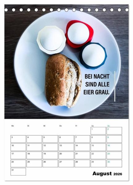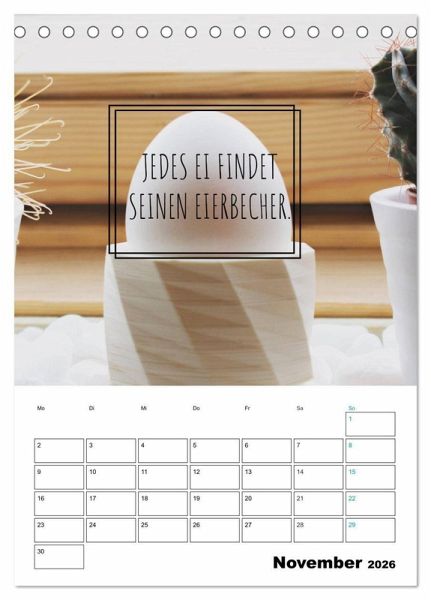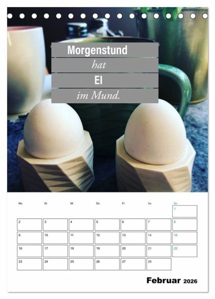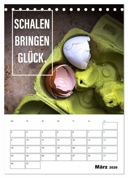 QUALITÄT - Hochwertiger Fotokalender mit 12 wunderschönen Motiven auf lichtbeständigem Bilderdruckpapier, robuste Spiralbindung.NACHHALTIG - deutliche Abfallreduzierung durch bedarfsgerechte Einzelstückfertigung, umweltfreundliches FSC-zertifiziertes Papier, Produktion in Deutschland, klimabewusste Logistik.PERFEKTES GESCHENK - Kalender für Freunde und Familie, für Kinder und Erwachsene, jung und alt, zu Weihnachten, Geburtstag oder zwischendurch.VIELFALT - Bildkalender in verschiedenen Formaten, z.B. DIN A5, DIN A4, DIN A3 sowie DIN A2. Ob Naturmotiv, Gemälde oder Fotos, ideal für ein persönliches Wohlfühlambiente.Monat für Monat mit einem flotten Ei Spruch in denTag starten. von Autor(in): Leonie Schreiber
