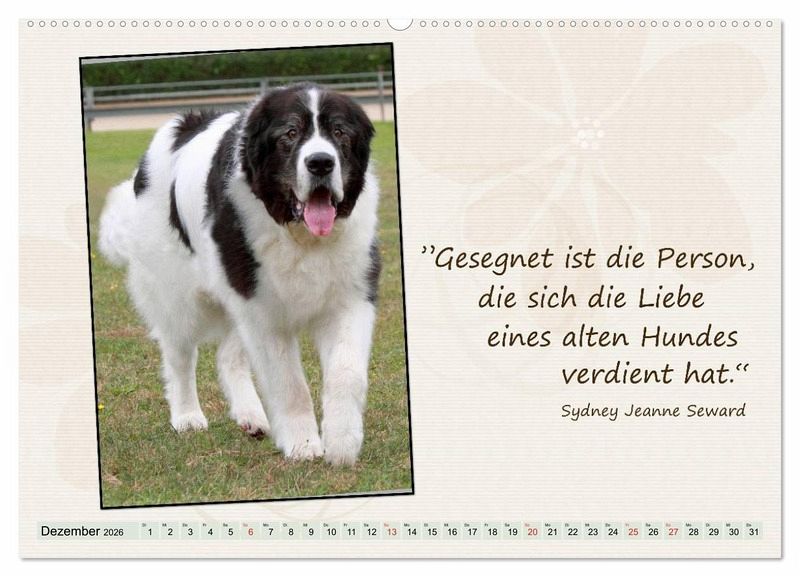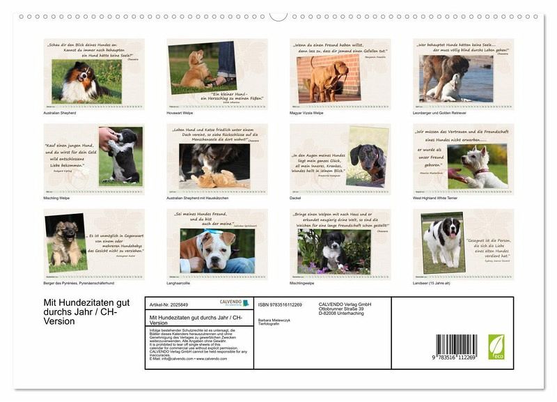 Kalendarium mit 13 ausgewählten Hundefotos und passenden Zitaten zum Thema Hunde.