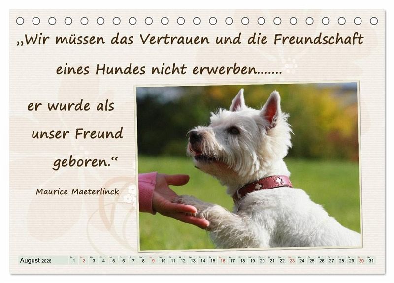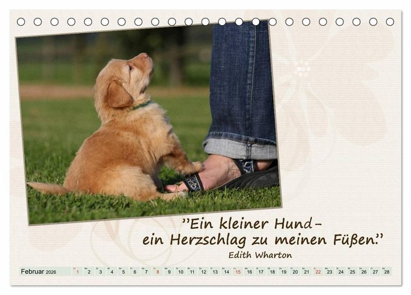 Kalendarium mit 13 ausgewählten Hundefotos und passenden Zitaten zum Thema Hunde.