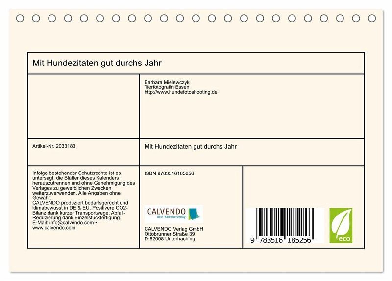 QUALITÄT - Hochwertiger Fotokalender mit 12 wunderschönen Motiven auf lichtbeständigem Bilderdruckpapier, robuste Spiralbindung.NACHHALTIG - deutliche Abfallreduzierung durch bedarfsgerechte Einzelstückfertigung, umweltfreundliches FSC-zertifiziertes Papier, Produktion in Deutschland, klimabewusste Logistik.PERFEKTES GESCHENK - Kalender für Freunde und Familie, für Kinder und Erwachsene, jung und alt, zu Weihnachten, Geburtstag oder zwischendurch.VIELFALT - Bildkalender in verschiedenen Formaten, z.B. DIN A5, DIN A4, DIN A3 sowie DIN A2. Ob Naturmotiv, Gemälde oder Fotos, ideal für ein persönliches Wohlfühlambiente.Hundekalender mit wunderschönen Fotos und ausgewählten Zitaten von Autor(in): Barbara Mielewczyk