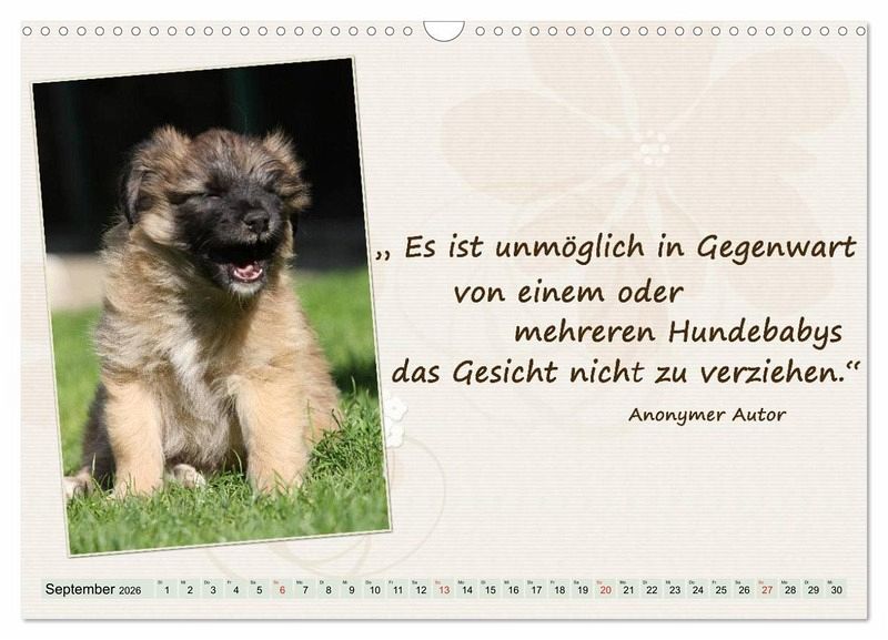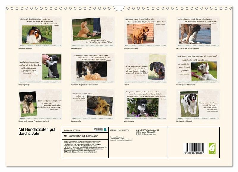 Kalendarium mit 13 ausgewählten Hundefotos und passenden Zitaten zum Thema Hunde.