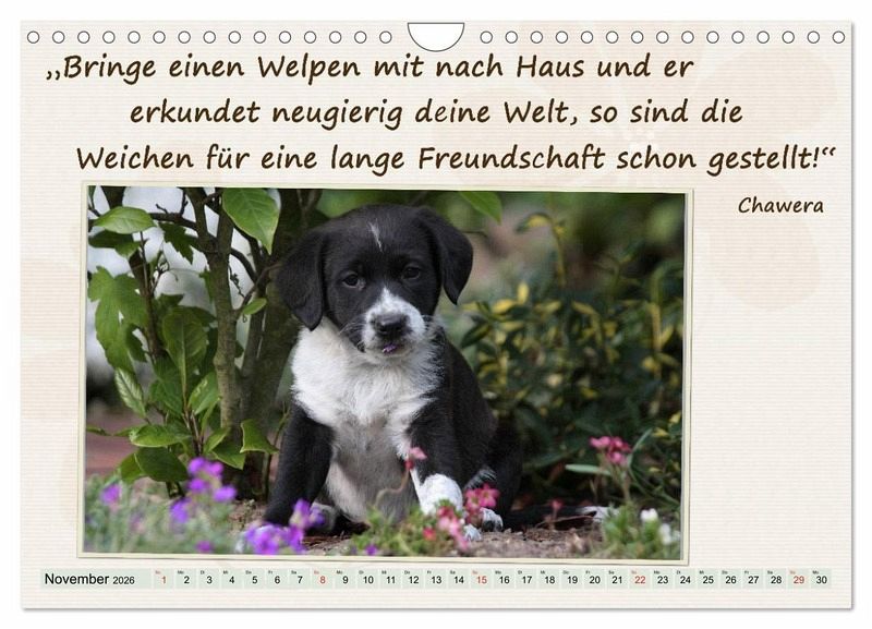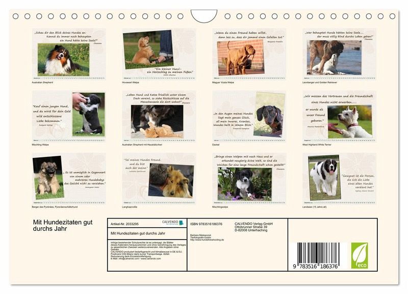 Kalendarium mit 13 ausgewählten Hundefotos und passenden Zitaten zum Thema Hunde.